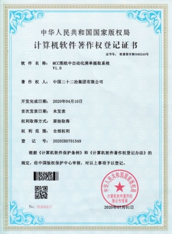 中國二十二冶集團獲得一項國家計算機軟件著作權(quán)登記證書