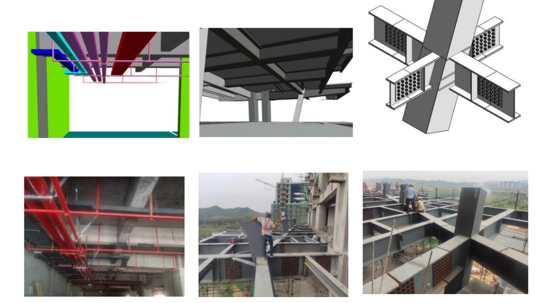 景德鎮(zhèn)藝術職業(yè)大學是我國首個藝術類職業(yè)大學,其中學校工學綜合組團中的雙創(chuàng)大樓為混凝土框架結構和懸挑鋼結構組合結構,是本項目的重難點單體工程。雙創(chuàng)大樓具有建筑造型比較新穎,各專業(yè)交叉多、施工工期緊張,鋼結構施工難度大,機電管線多且復雜,設備房數(shù)量多等特點,故項目采用BIM作為解決以上重難點的技術措施。BIM技術貫穿設計施工全過程,對項目設計-施工協(xié)同、商務成本管控、工期進度管控、施工質量管控起到重要作用。
