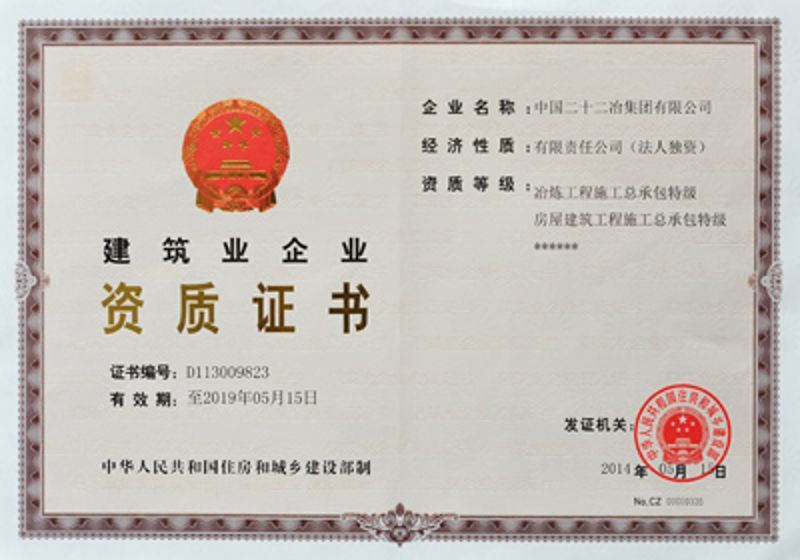 中國(guó)二十二冶集團(tuán)施工資質(zhì)