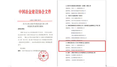 冶金行業(yè)優(yōu)質(zhì)工程獎為我國工程質(zhì)量管理領(lǐng)域省部級獎項,旨在表彰冶金行業(yè)內(nèi)工程質(zhì)量優(yōu)秀典范。該獎項每年評選一次,獲獎工程均代表當(dāng)今全國冶金行業(yè)的最高水平。申報項目的工程質(zhì)量皆達到國內(nèi)建設(shè)工程的先進水平,并具有較好的經(jīng)濟效益、環(huán)境效益和社會效益。