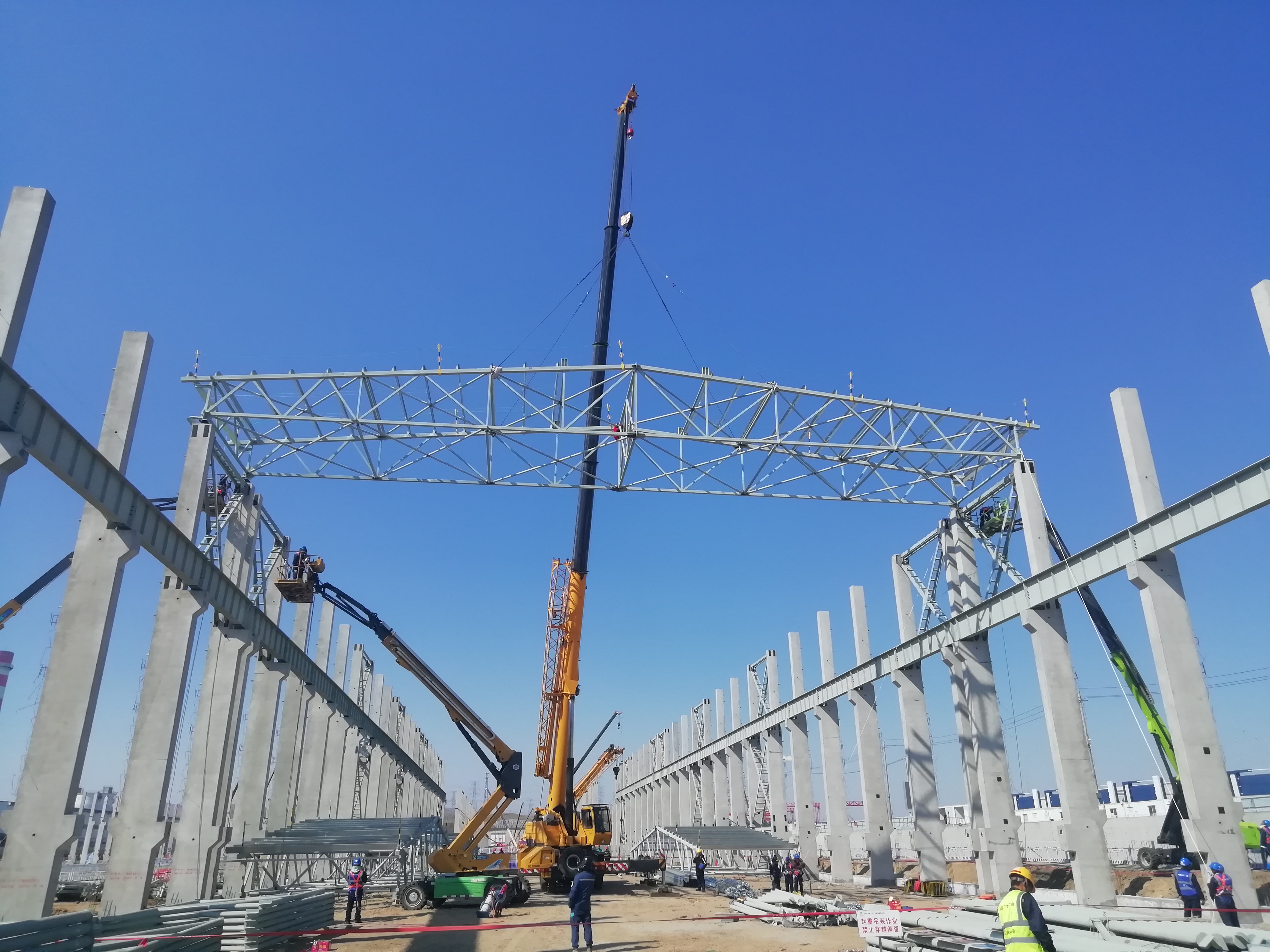 5月3日,冶金公司扎鋁二期項目完成第一跨鋼屋架安裝作業(yè),標志著項目成功邁入結構安裝大干階段。