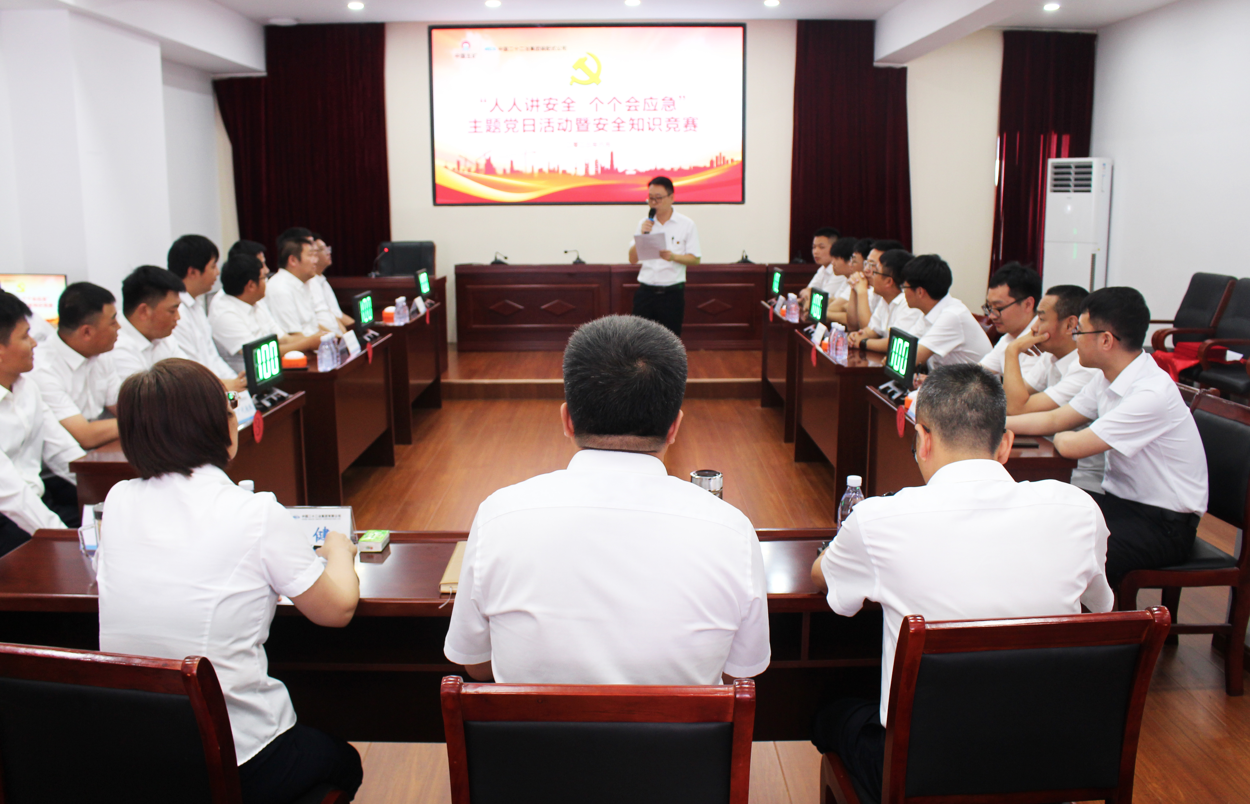 在比賽中各代表隊(duì)陣容整齊,爭(zhēng)先恐后,對(duì)答如流,選手間配合默契,隊(duì)伍比分你追我趕,現(xiàn)場(chǎng)氣氛熱烈,掌聲不斷。最終,生產(chǎn)廠代表隊(duì)、邢臺(tái)片區(qū)項(xiàng)目代表隊(duì)、機(jī)關(guān)代表隊(duì)分獲一二三名。