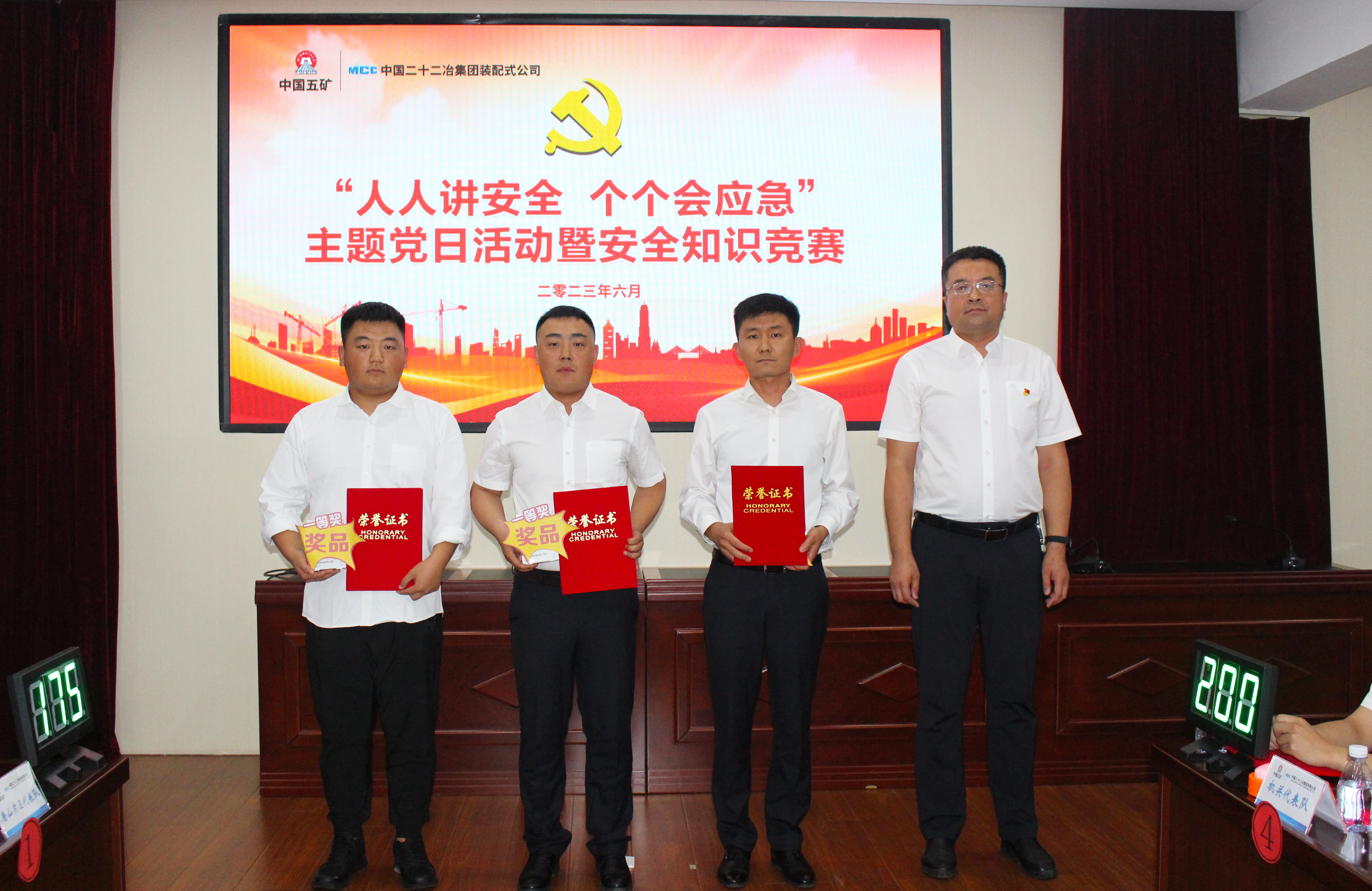 為迎接中國共產(chǎn)黨成立102周年,扎實(shí)推進(jìn)“安全生產(chǎn)月”各類活動(dòng),落實(shí)落細(xì)集團(tuán)公司“大品牌建設(shè)年”主題主線,不斷促進(jìn)黨建工作與中心工作深入融合,6月29日上午,裝配式公司黨群工作部與安全環(huán)保部聯(lián)合舉辦了以“人人講安全 個(gè)個(gè)會(huì)應(yīng)急”為主題的“黨建+安全”知識(shí)競(jìng)賽活動(dòng)。本次競(jìng)賽共6支隊(duì)伍參賽,裝配式公司副總經(jīng)理孔令雨、副總經(jīng)濟(jì)師張健、經(jīng)理助理覃曉君作為評(píng)委出席本次活動(dòng)。