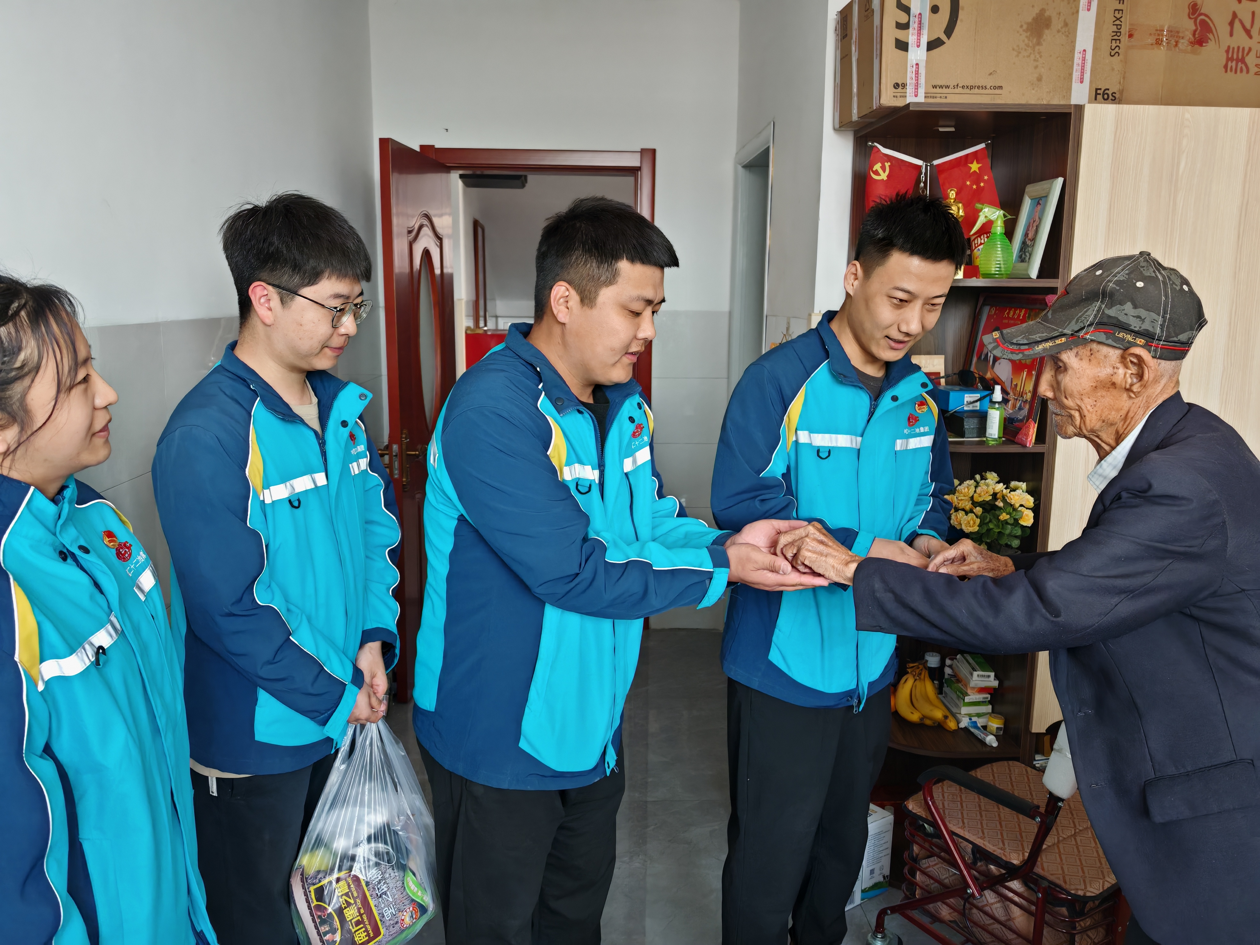 玉田職教中心項(xiàng)目團(tuán)支部開展“聽老紅軍爺爺講故事”主題活動(dòng)。組織團(tuán)員青年來到鴉鴻橋鎮(zhèn)穆莊子村福順老年公寓看望99歲高齡的老紅軍周子新爺爺。周爺爺講述自己在東北野戰(zhàn)軍第十三兵團(tuán)當(dāng)參謀長的經(jīng)歷“記得那時(shí)候被日軍合圍,不分日夜的在田間巡查,天當(dāng)被,地當(dāng)床,野外睡覺心不涼,抗日救國心中燃,刮風(fēng)下雨心不寒”?!案锩且环N信仰,心中有信仰,腳下就有了方向,我們要矢志不渝的跟黨走,國家一定會(huì)越來越好,你們青年是國家的未來,希望你們不斷超越自我,實(shí)現(xiàn)自己的夢(mèng)想,為祖國的繁榮昌盛貢獻(xiàn)自己的一份力量?!敝軤敔攲?duì)團(tuán)員青年的囑托。聽老紅軍爺爺講起當(dāng)年的光輝歲月,讓大家倍加珍惜眼前的幸福生活,青年員工將繼承老一輩革命家,不畏艱險(xiǎn)、以苦為樂的革命精神。在工作中將用責(zé)任心和使命感,發(fā)揚(yáng)團(tuán)結(jié)拼搏的精神,用實(shí)際行動(dòng)為項(xiàng)目優(yōu)質(zhì)履約貢獻(xiàn)力量,讓紅色基因薪火相傳。最后,青年員工給老紅軍爺爺送上慰問品和紀(jì)念品,表達(dá)對(duì)革命先輩的關(guān)心和敬仰。
