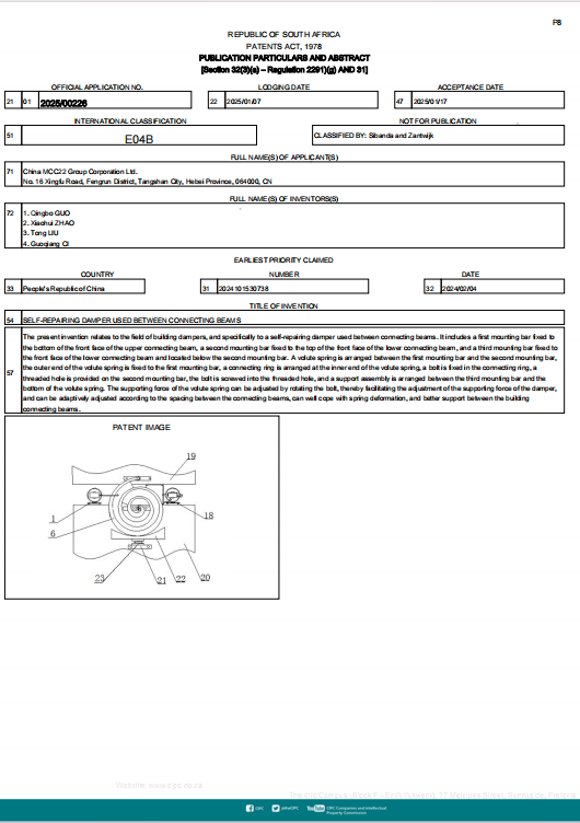 中國(guó)二十二冶裝配式分公司為開(kāi)拓海外市場(chǎng)同時(shí)響應(yīng)“雙百”要求,結(jié)合公司海外發(fā)展戰(zhàn)略,積極開(kāi)展國(guó)際專利申報(bào)工作。近日,申報(bào)的“應(yīng)用于連梁間的自修復(fù)型阻尼器”等1項(xiàng)專利獲批國(guó)際專利,標(biāo)志著公司科研創(chuàng)新實(shí)力與國(guó)際影響力的持續(xù)提升,為海外市場(chǎng)開(kāi)展提供有力的技術(shù)支持。