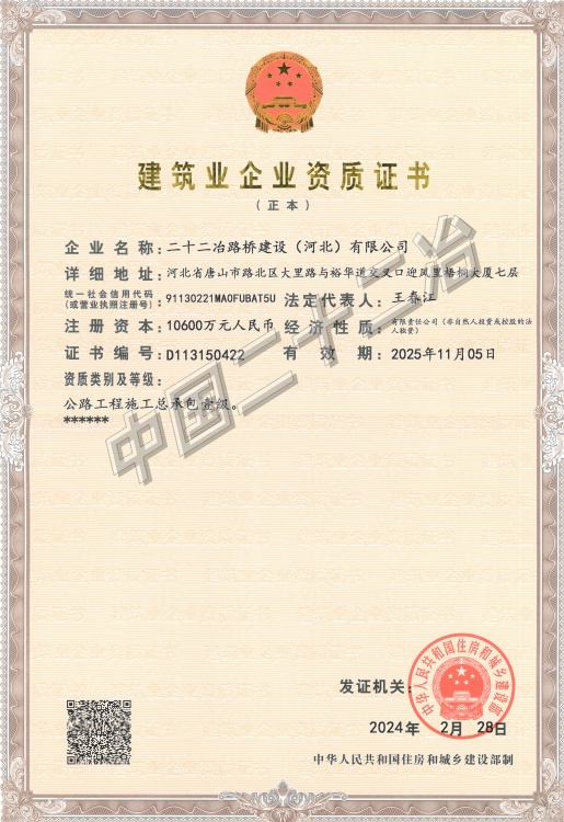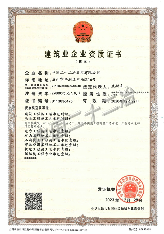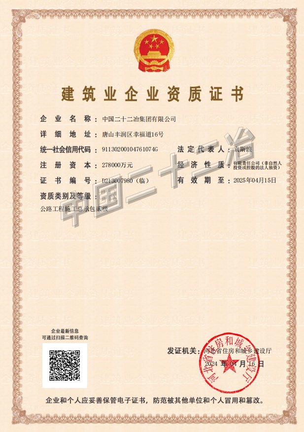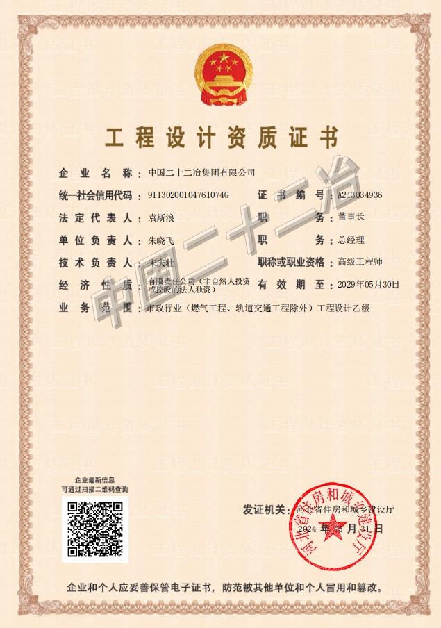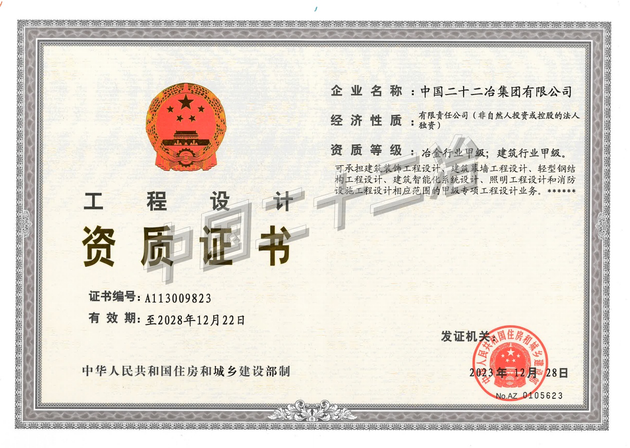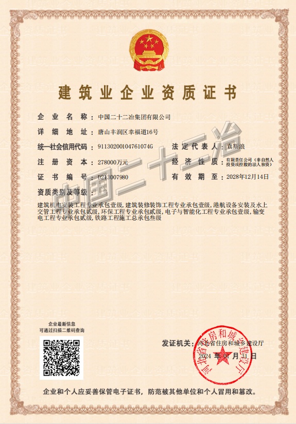 中國二十二冶集團施工、設(shè)計資質(zhì)